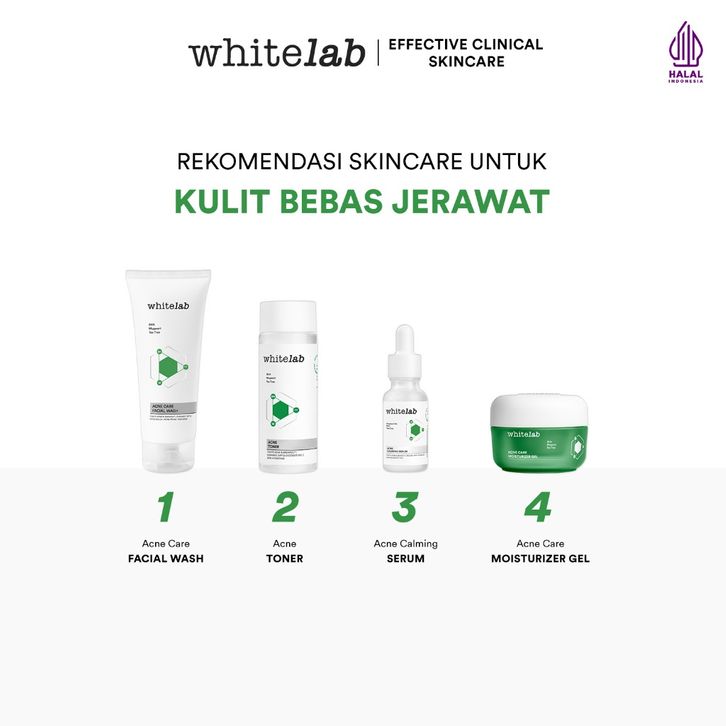 Whitelab 4pcs Paket Acne - Facial Wash, Toner, Serum, Moisturizer Paket Skincare