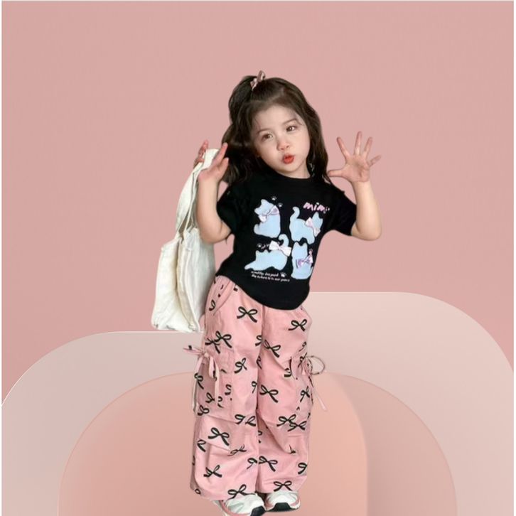 Setelan Baju lengan pendek dan celana panjang Anak Perempuan Motif star Lucu usia1-5thn Setelan anak perempuan baju anak