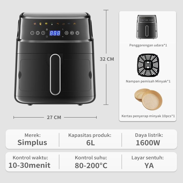 Simplus Air Fryer 4L Low watt 650W Original Penggorengan Sehat Tanpa Minyak Anti Lengket Garansi Resmi
