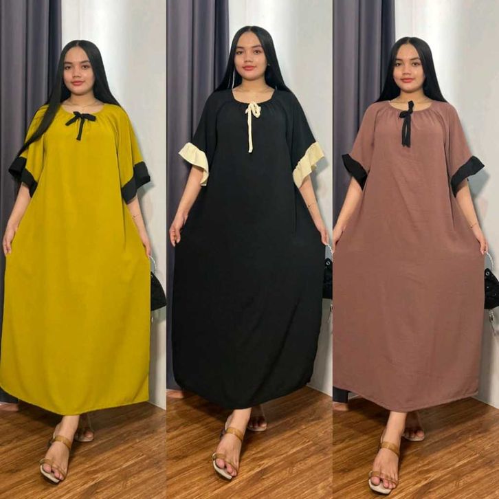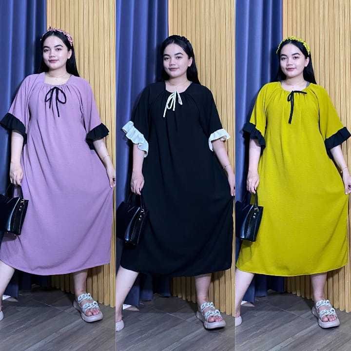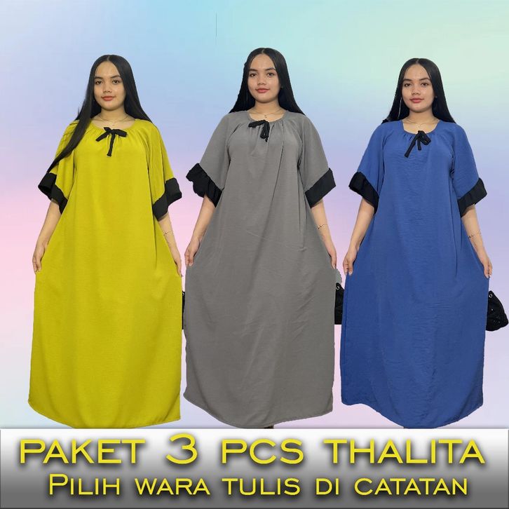 Paket 3 Pcs Thalia Dress Crinkle Polos Wanita