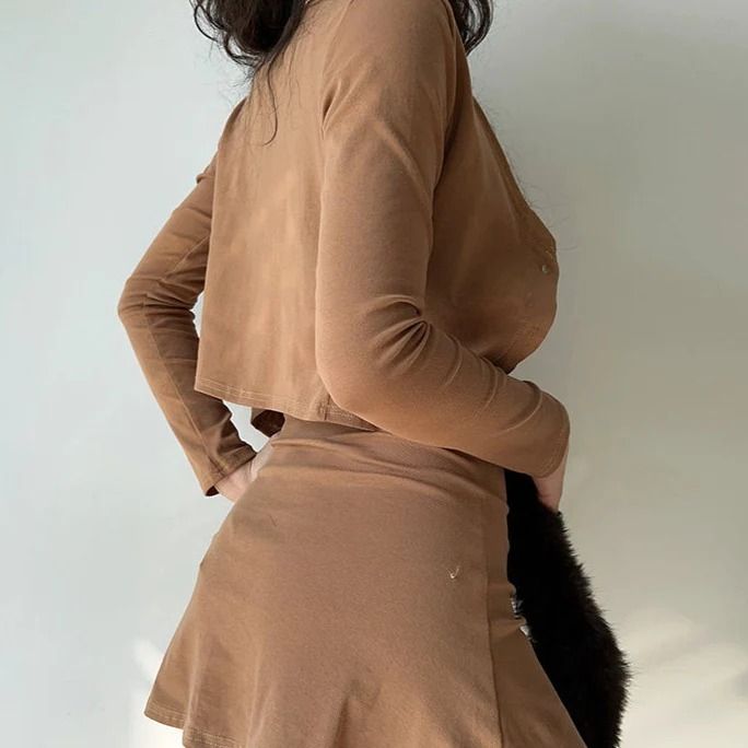 One Set Strap Mini Dress + V Neck Long Sleeve Cardigan 1701 S/M/L/XL