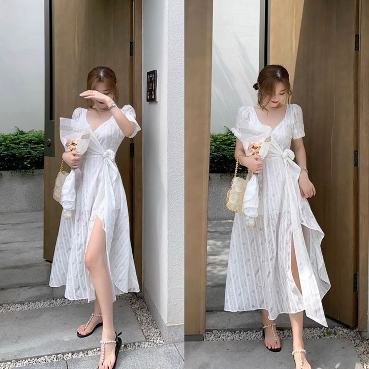 D0447 KEANA KOREAN STYLE VINTAGE MIDI DRESS PANTAI MUSIM PANAS SUMMER