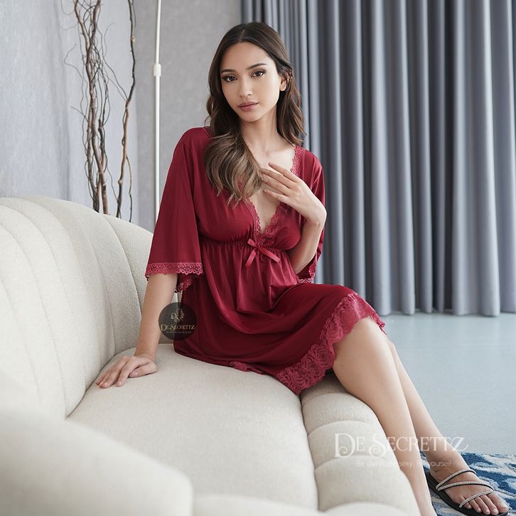DeSecrettz MAUDY Baju Tidur Wanita Dewasa Daster Kekinian Lengan 3/4 Bahan Spandeks Sutra Bisa Untuk Big Size