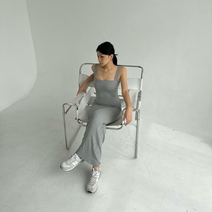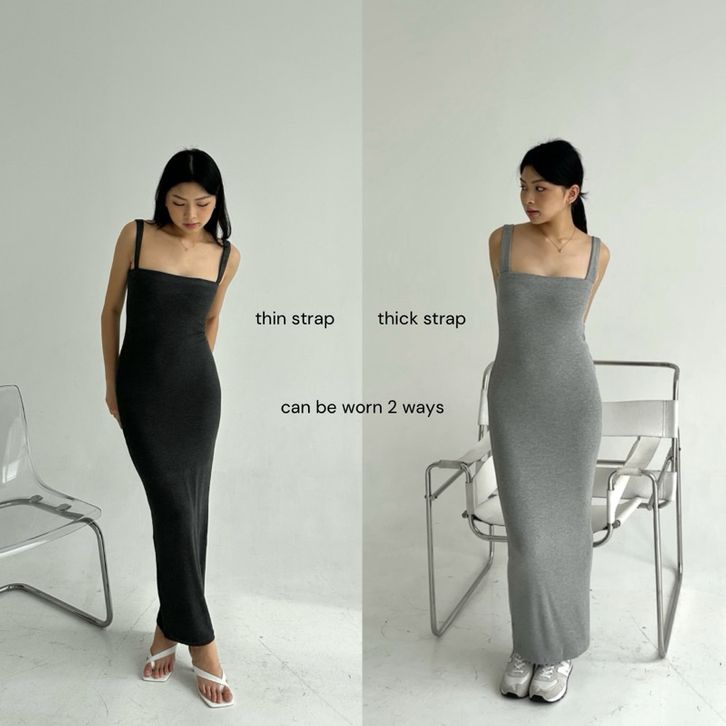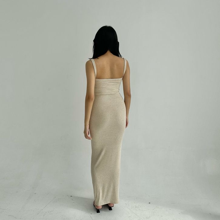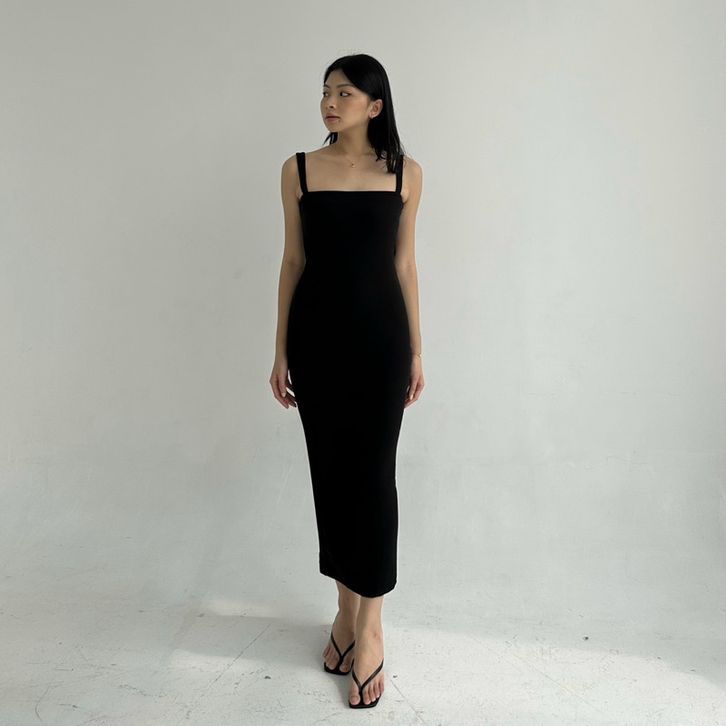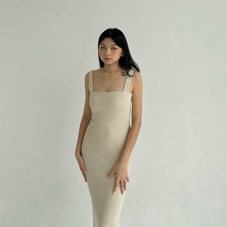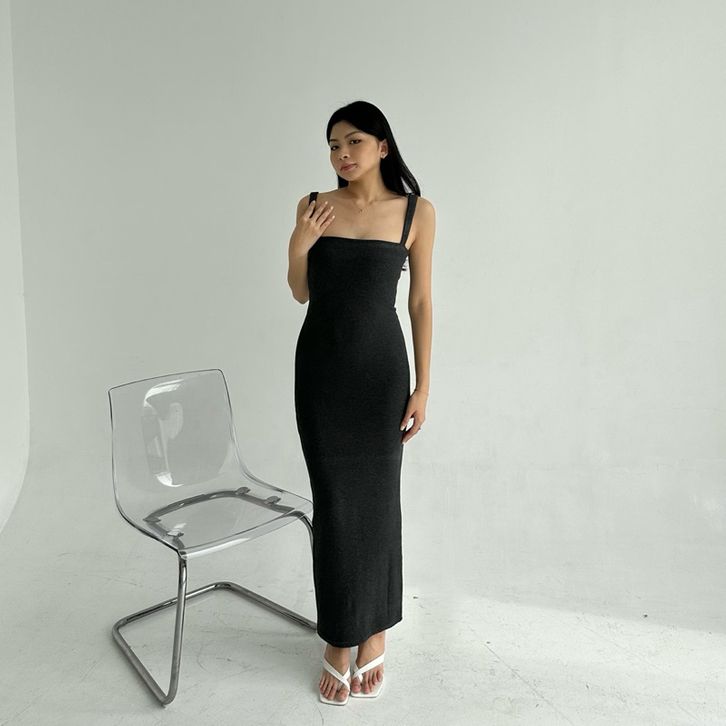 EVE DRESS | ROOHA | Basic Dress Panjang Wanita Ribbed Knit Setelan Tanktop Terusan Tanpa Lengan Kotak Neck Korean Maxi