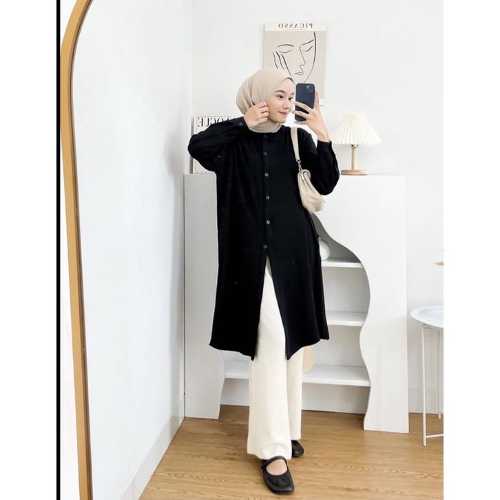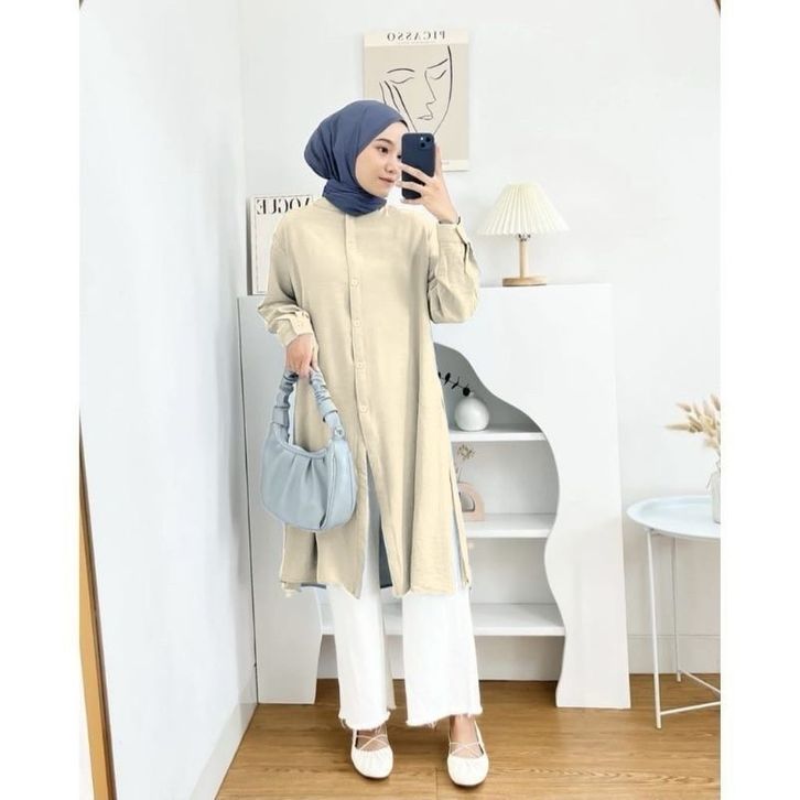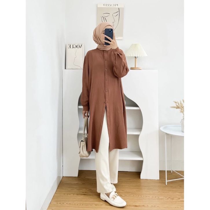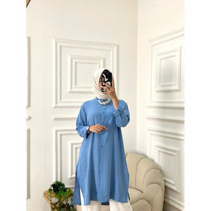 Baju Tunik Wanita Tunik Muslimah Perempuan Lengan Panjang Kasual Kerja Kekinian Bahan Premium Crinkle Airflow Stylish