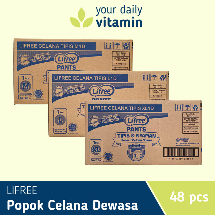 LIFREE PANTS POPOK CELANA DEWASA DUS ISI 48 SACHET - KEMASSAN RENCENG - M
