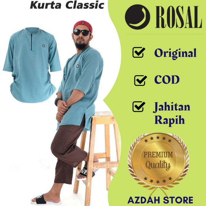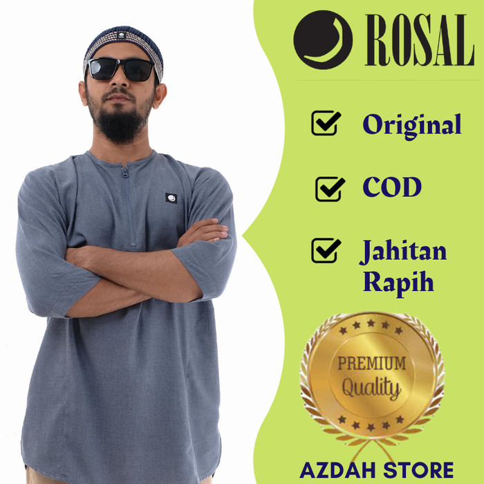 BAJU ATASAN MUSLIM KAOS KURTA SHOLAT SHALAT PRIA ROSAL M XXXL BIG SIZE - NAVY, XL