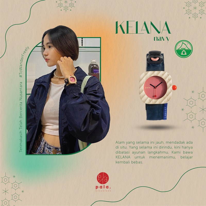 Jam Tangan Kayu Pala Nusantara X Kelana Navy Mini Kanvas Fashion Wanita Pria Unisex Terlaris