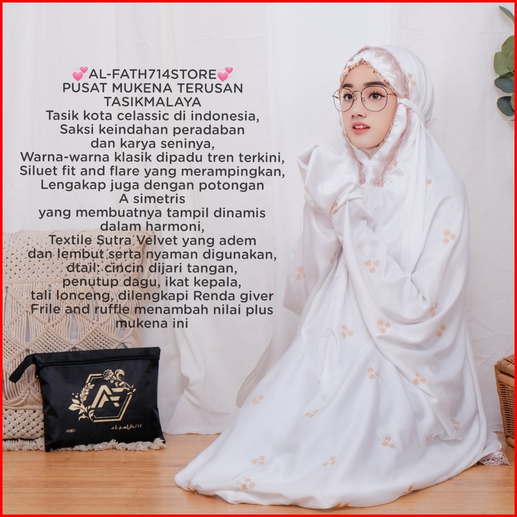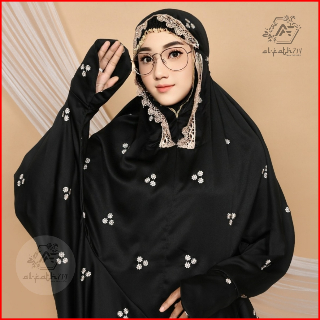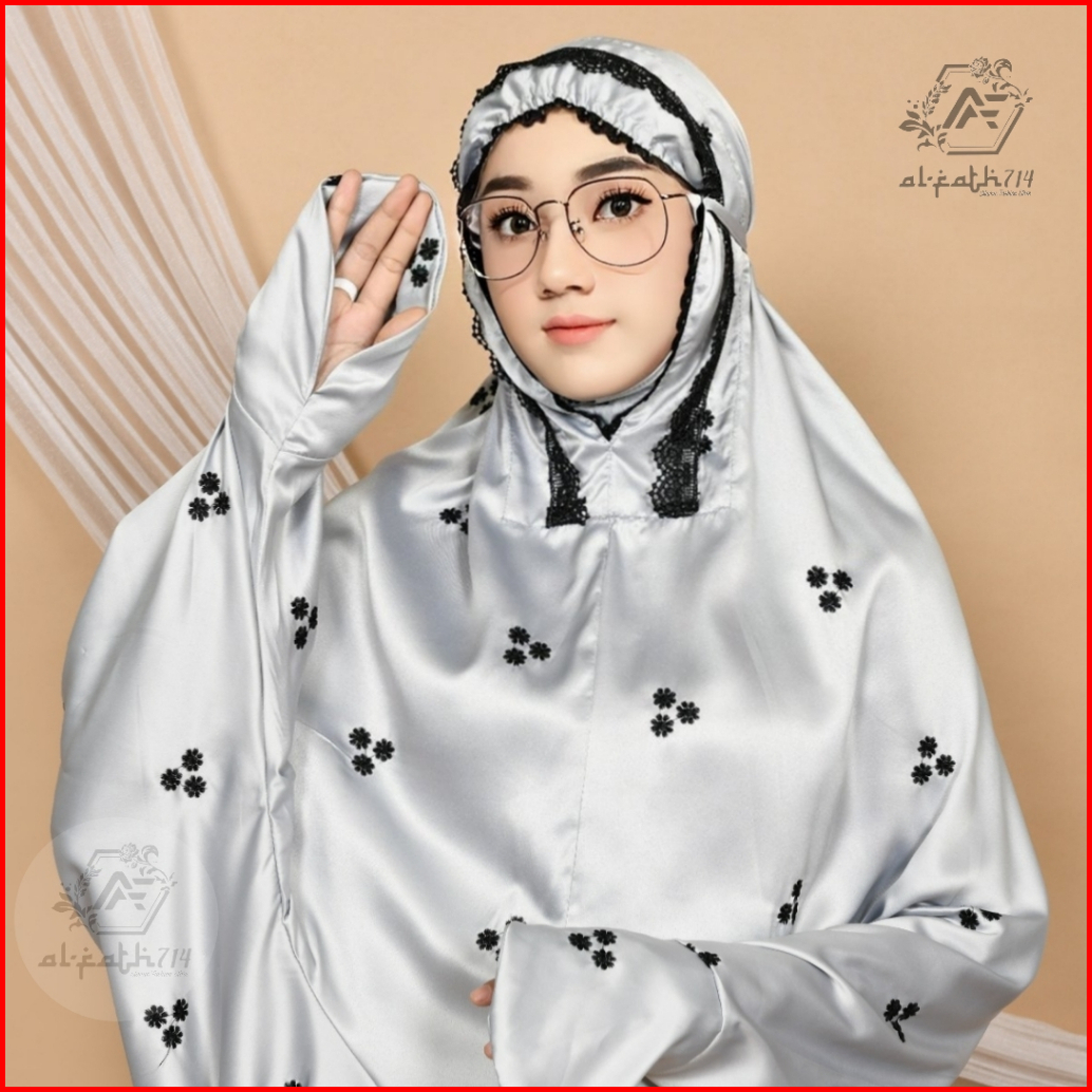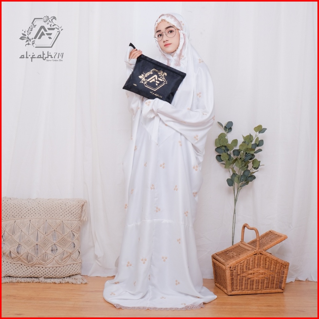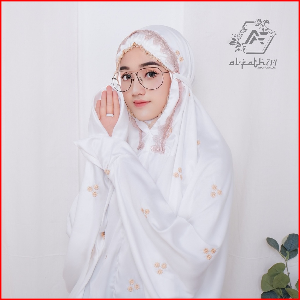 Mukena Terusan Dewasa Sutra Bordir Jasmine Mukenah Lajuran Alfath