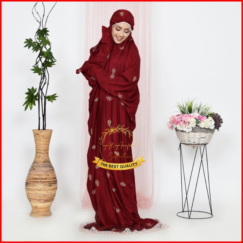 Mukena Lajuran Daily Tropical Mukenah Terusan Dewasa Bordir Rukuh Langsungan Bordir Jumbo Putih Abu Marun Coksu