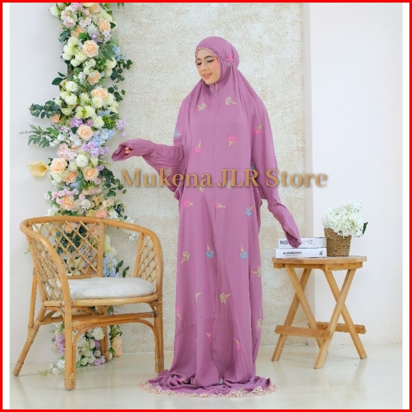 Mukena Terusan Jlr Bordir Dandelion Rayon Premium