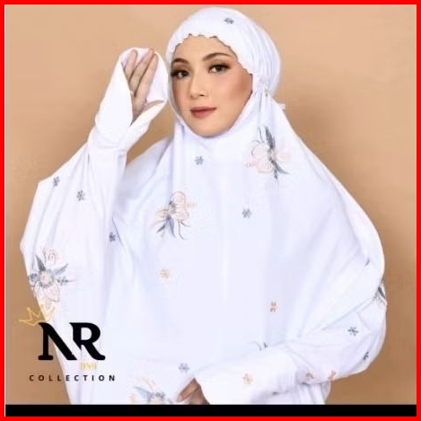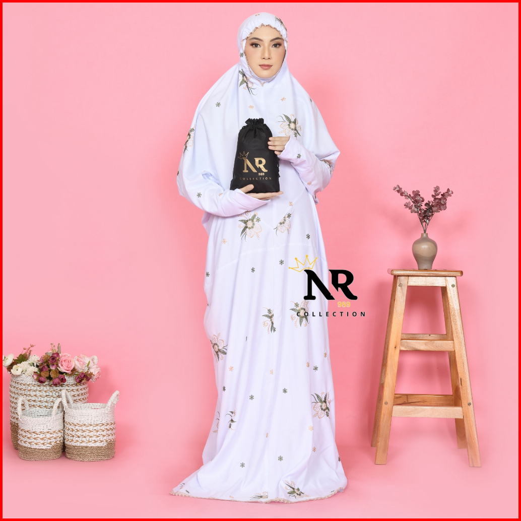 Nr989 - Mukena Terusan Dewasa Bordir Bunga Serangkai Katun Premium