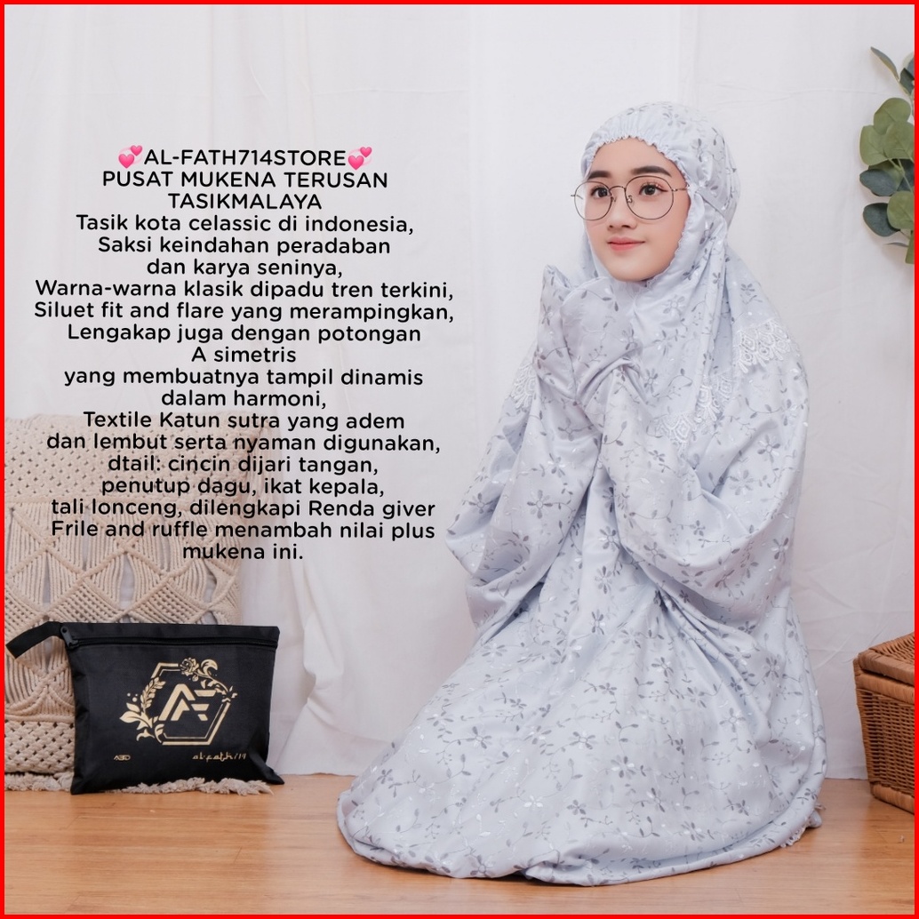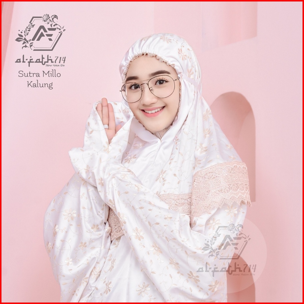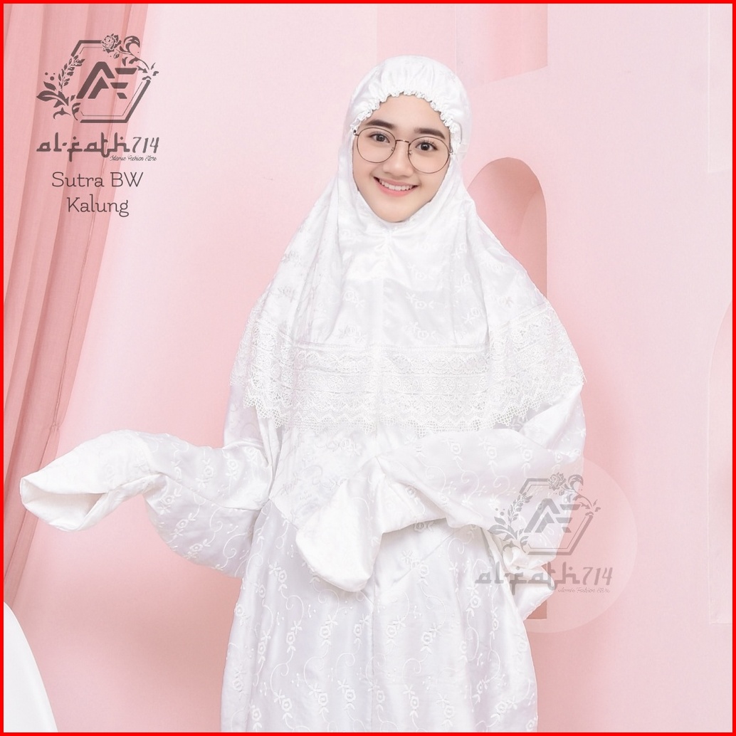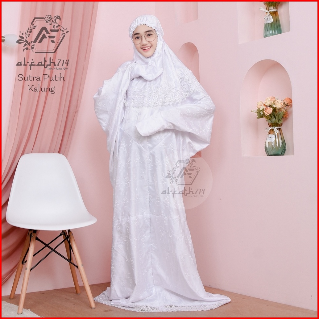 Mukena Dewasa Sutra Terusan Renda Kalung Mukena Alfath