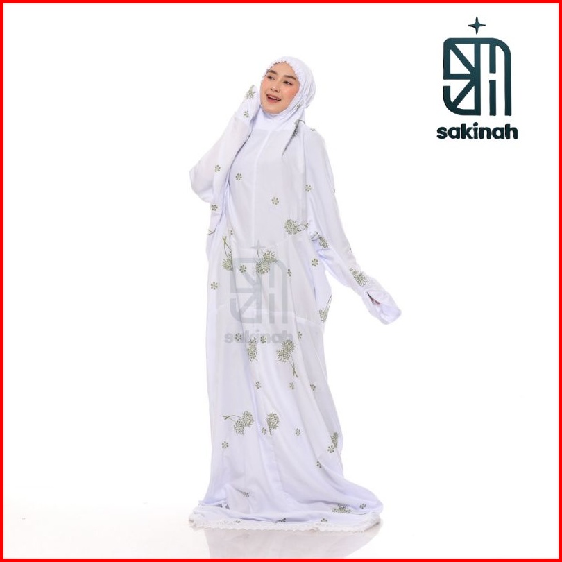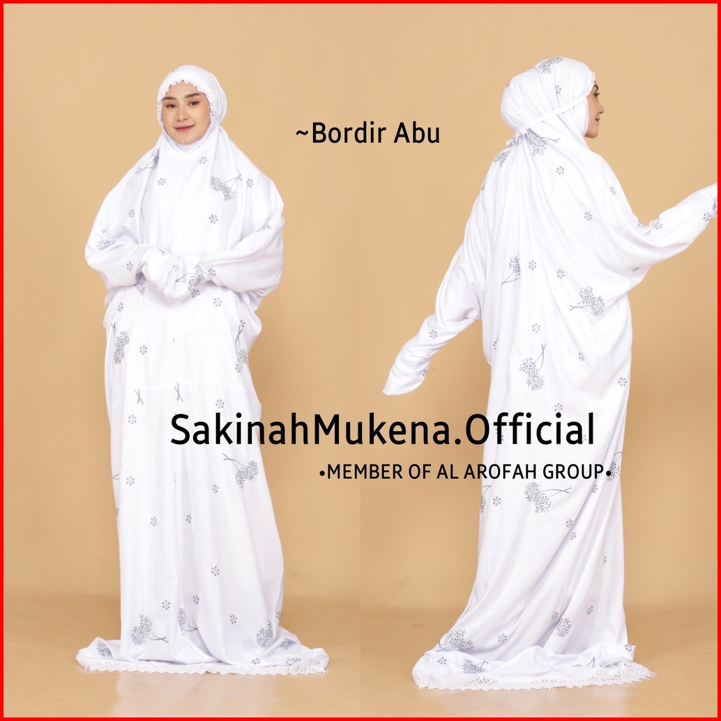 Sakinah - Mukena Putih Terusan Dewasa Jumbo Bordir Bunga Agnapantus Katun Premium Super