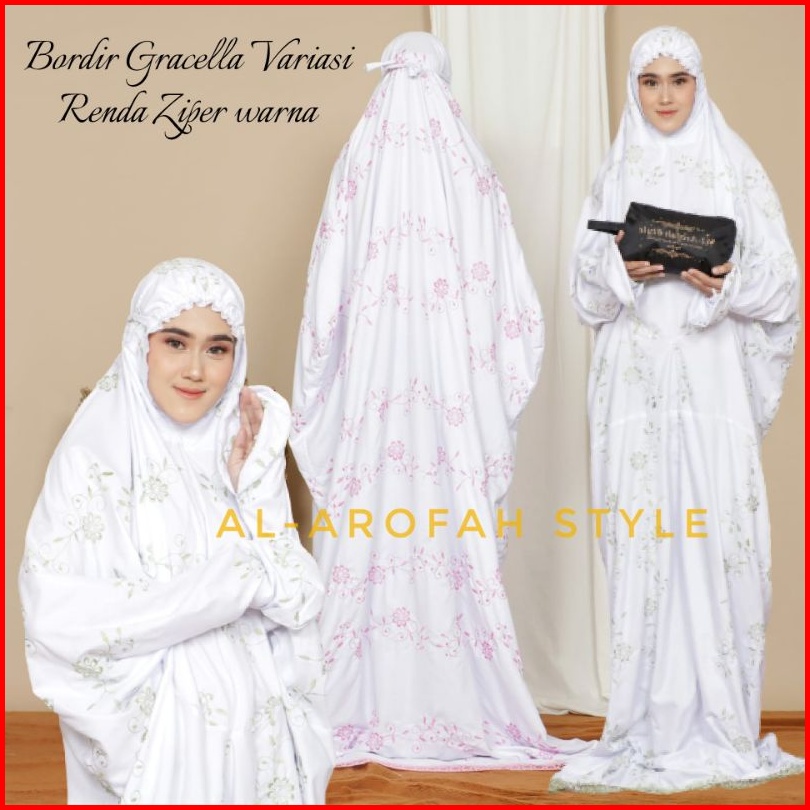 Mukena Terusan Mewah Gracella Style Al-arofah Murah Lajuran Dewasa