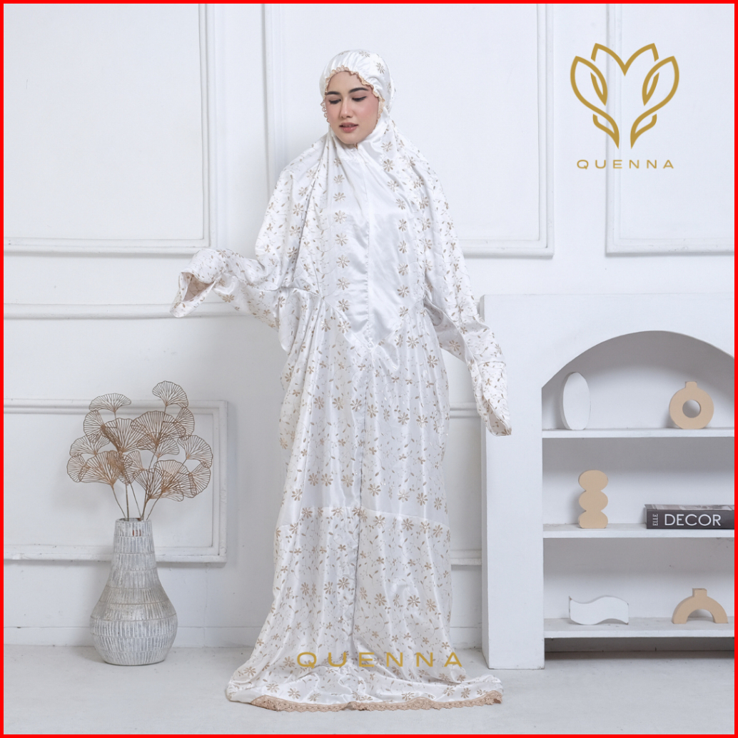 Quenna - Mukena Terusan Sutra Milo Bordir Prada Jumbo Mukenah Lajuran