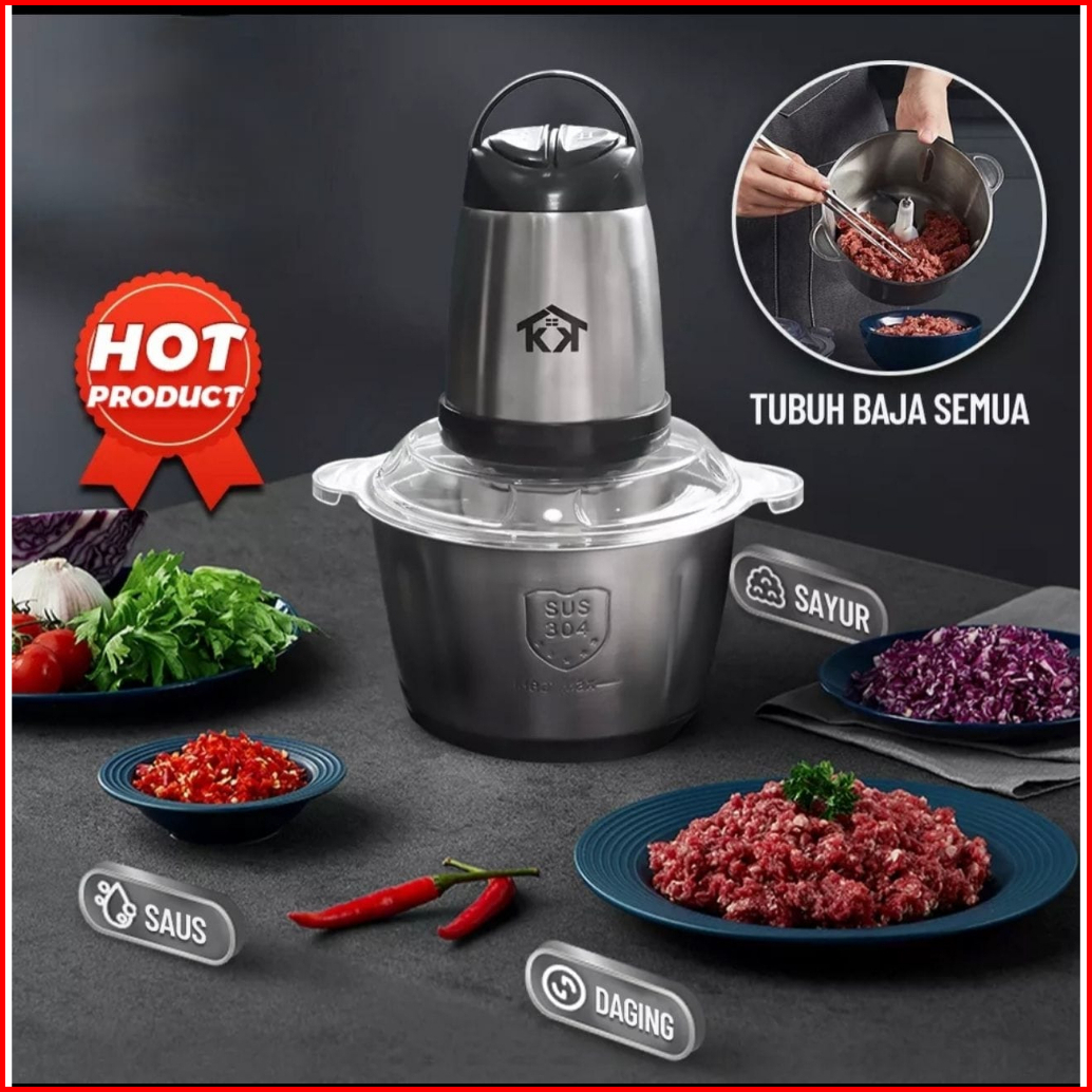 Blender Chopper 2l Mesin Penggiling Daging Stainless Steel Food Processor Meat Grinder Elektrik