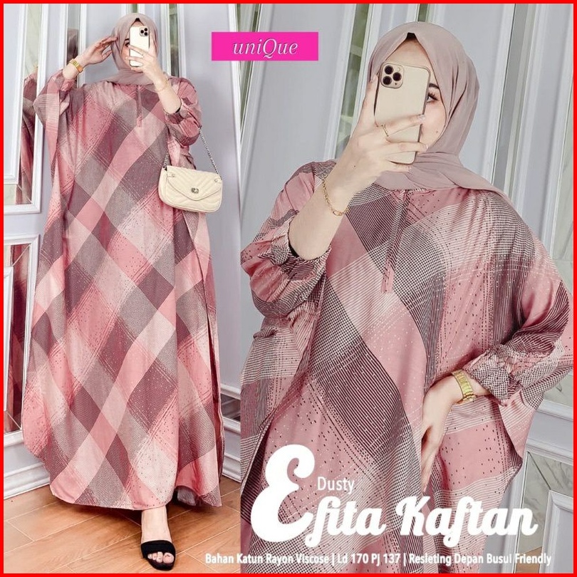 Efita Kaftan Unique Jumbo Busui Resleting Depan Kain Rayon Premium Tebal
