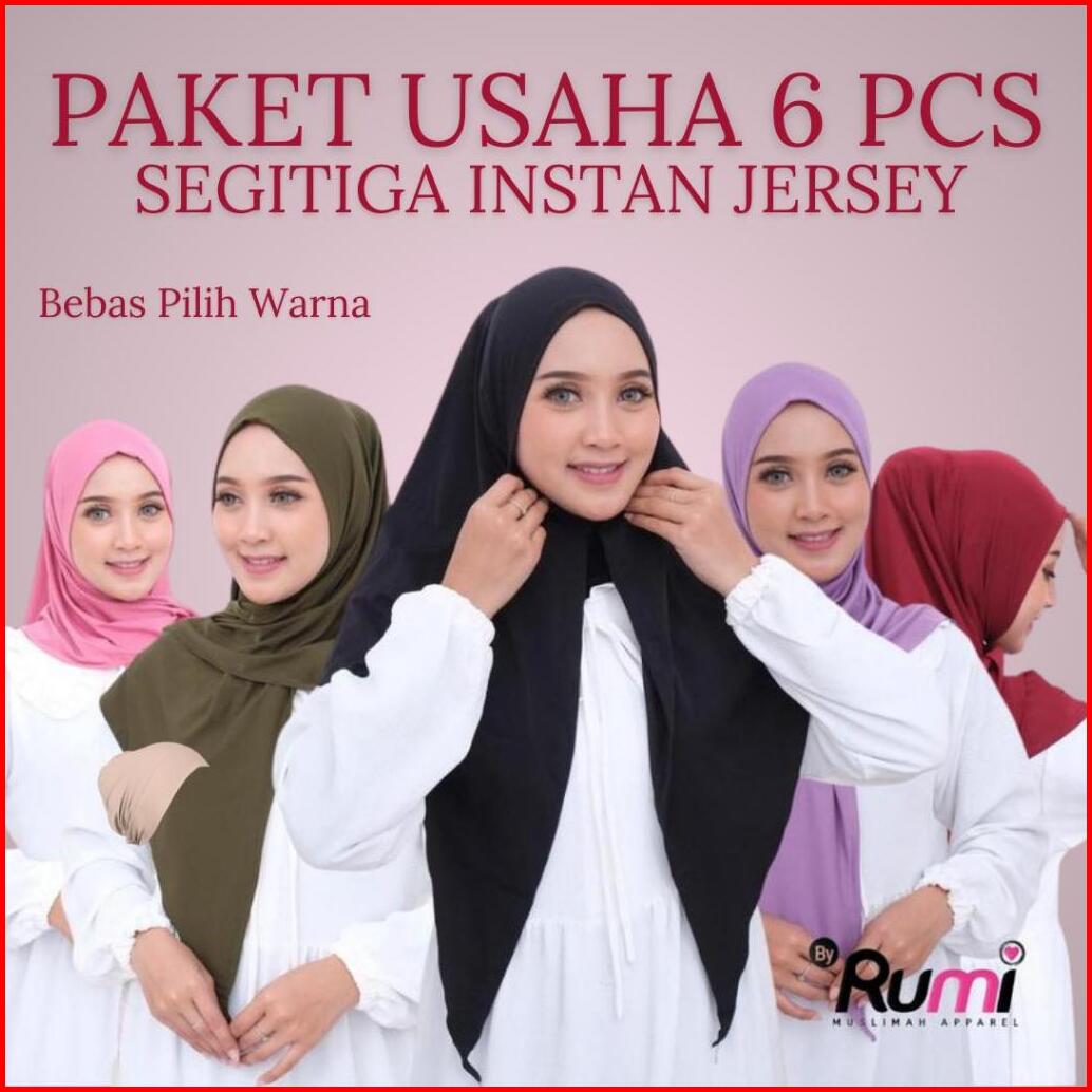 Rumi Paket Usaha 6 Pcs Salma Jilbab Segitiga Jersey Hijab Oval Kerudung Simpel Muslim Wanita