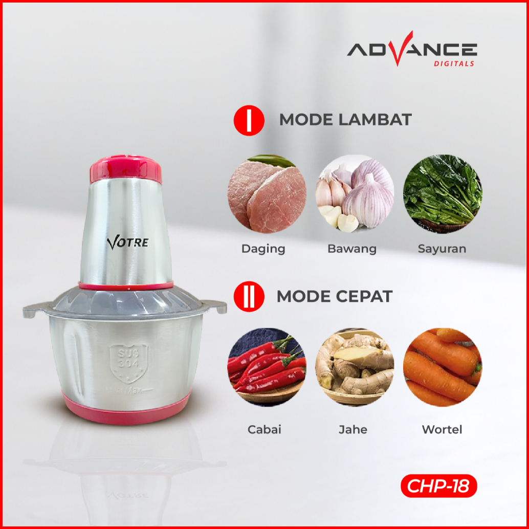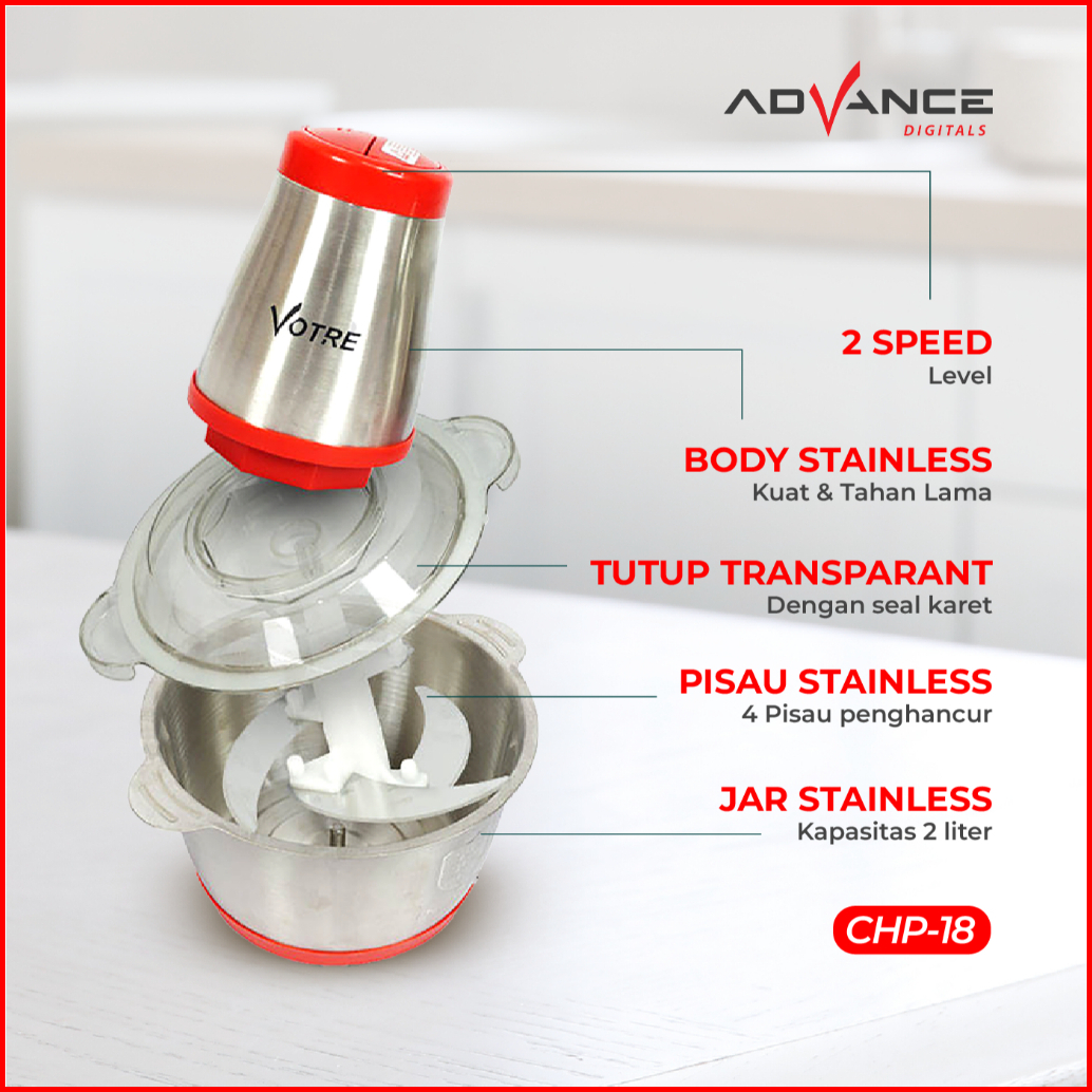 Garansi 1 Tahunadvance Blender Chp-18 Votre Penggiling Daging Sayur Buah Meat Chopper Ukuran 2l Baja Tahan Karat