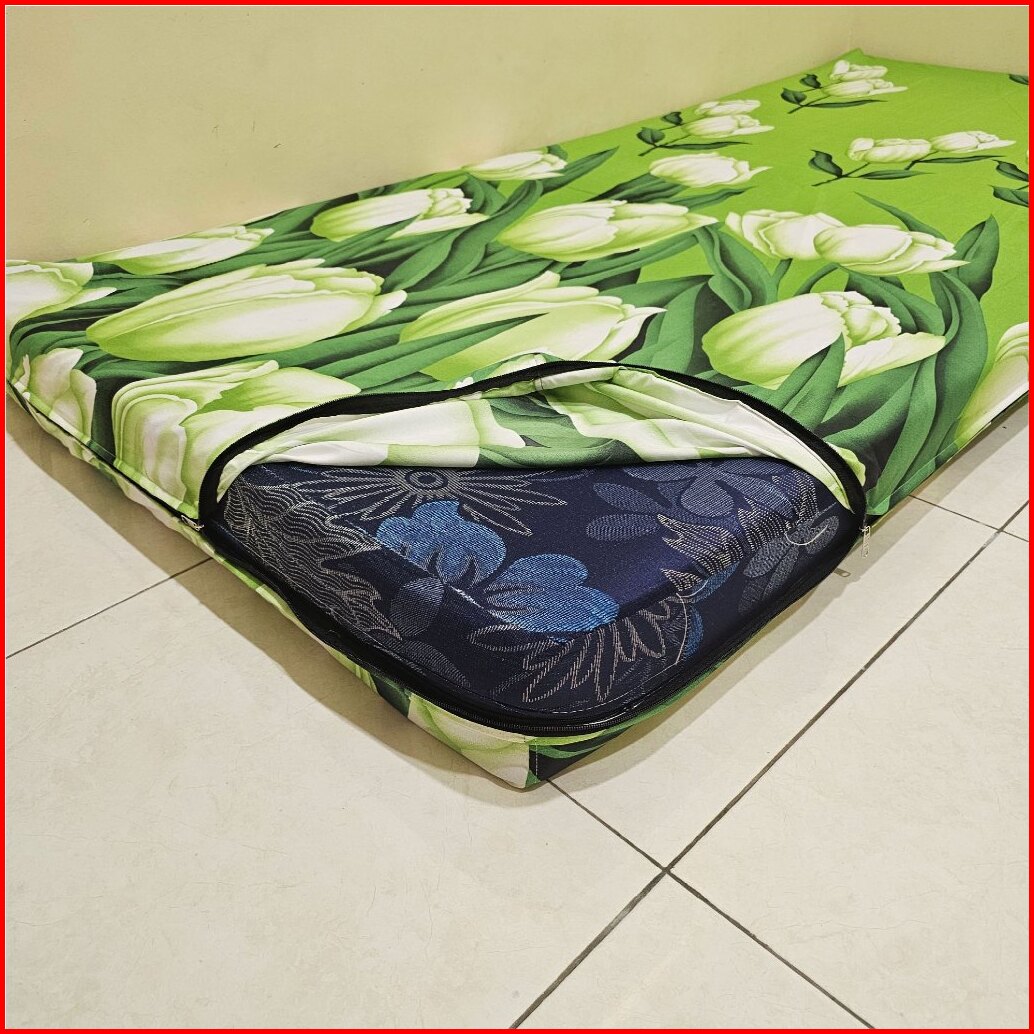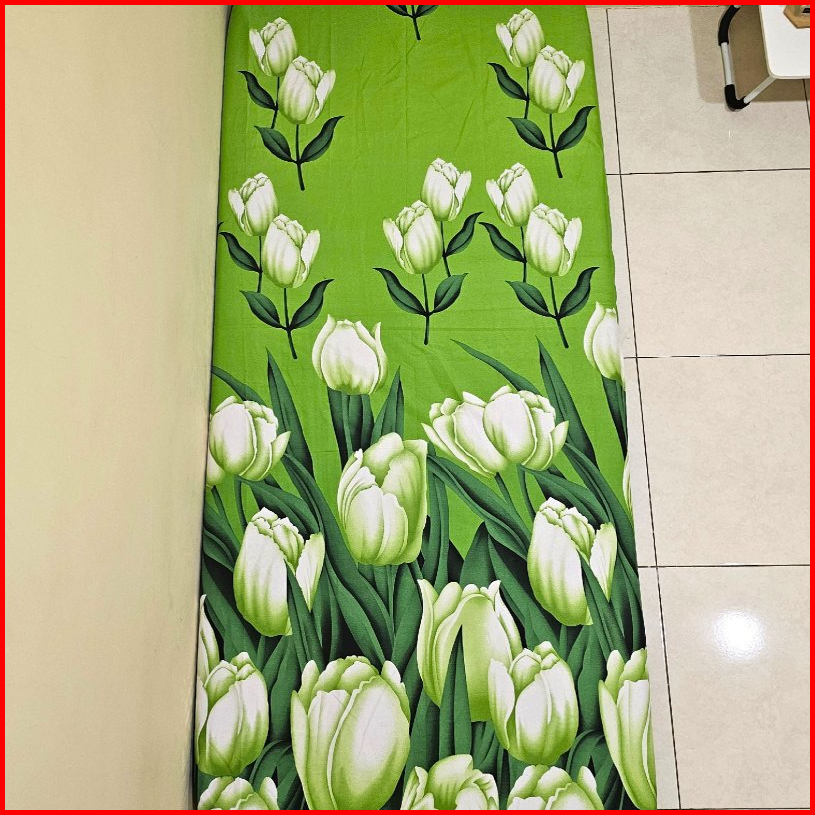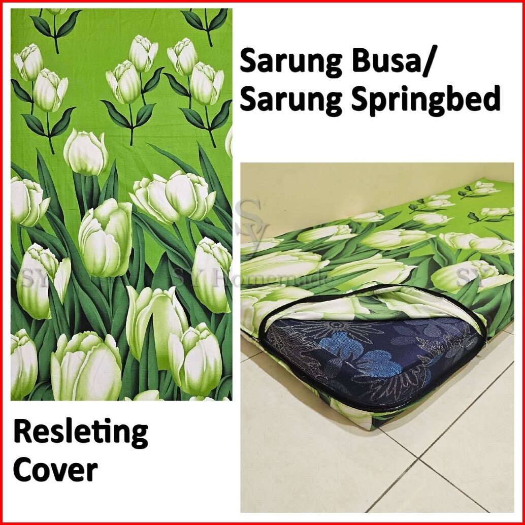 Sarung Kasur Busa Springbed Resleting Cover Motif Tulip Hijau