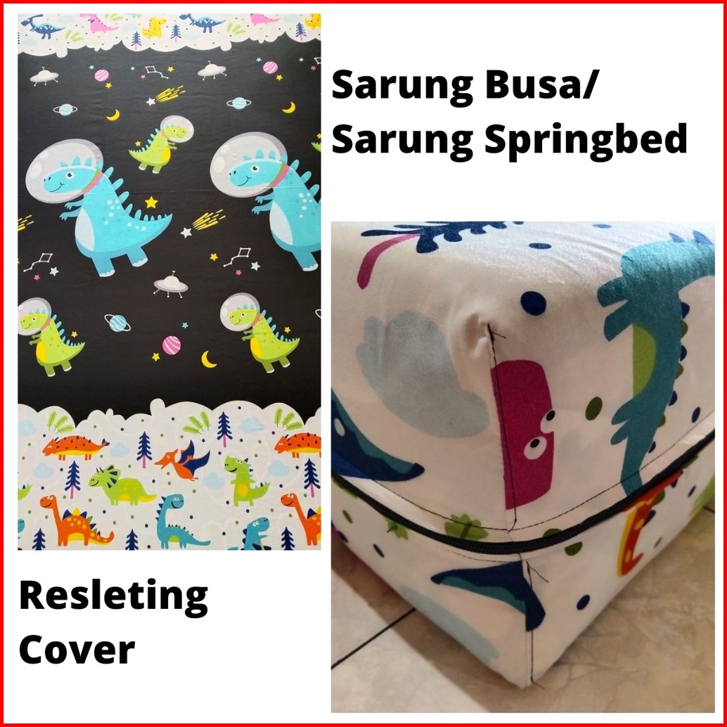 Sarung Kasur Busa Springbed Resleting Cover Motif Dinosaurus