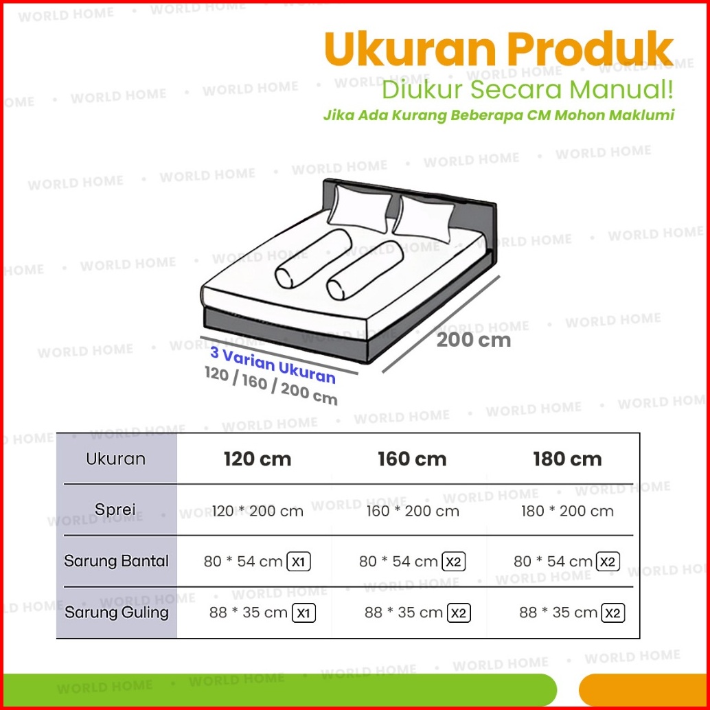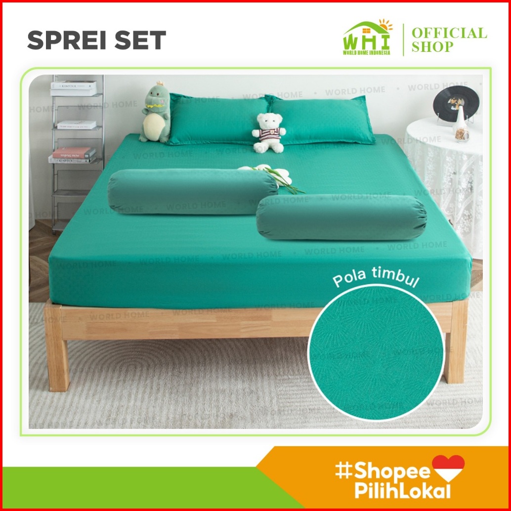 World Home Sprei Polos Embos Bahan Halus Adem Ukuran 120 160 180 Sprei Anti Luntur Warna Cerah
