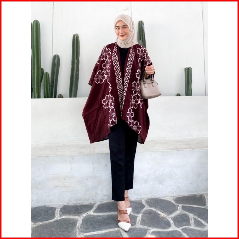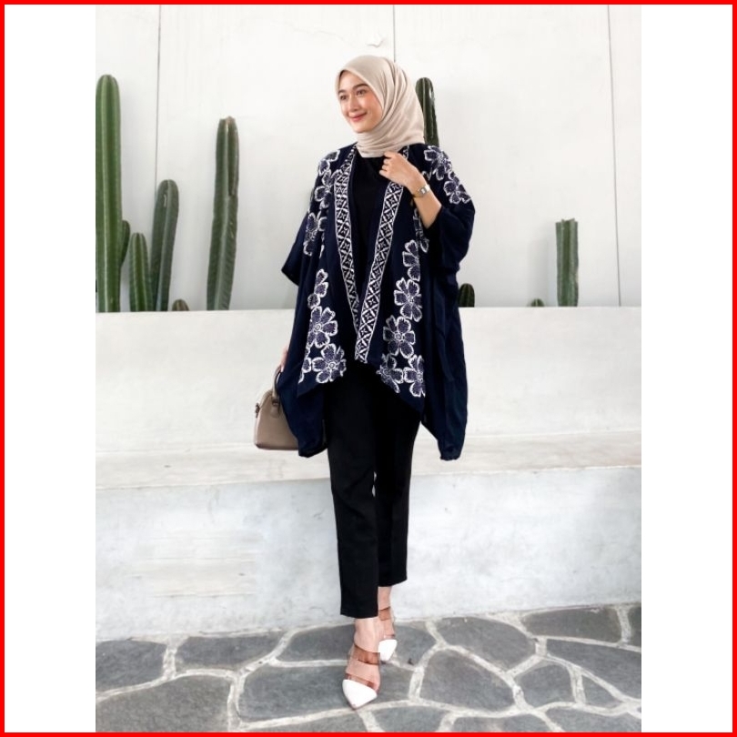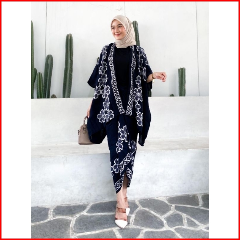 1set Tunik Kaftan Outfit Wanita Kondangan Simpel One Set Rok Lilit Motif Kembang Telon Kaftan Tunik Kekinian