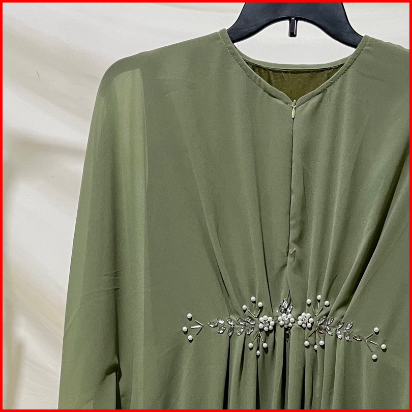 Kaftan Ceruty Babydoll Bordir Peyet Exclusive Kaftan Dere Kaftan Lebaran 2025