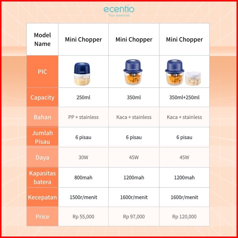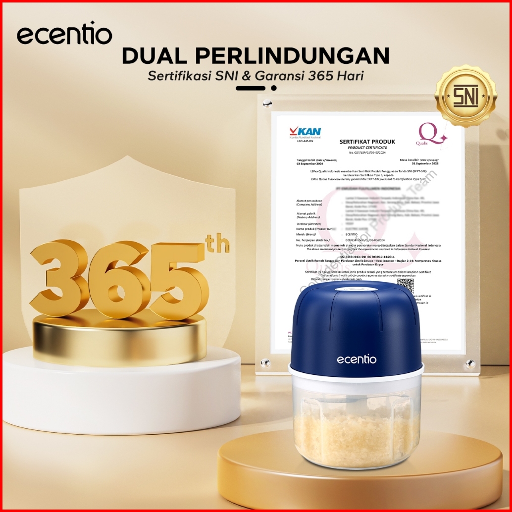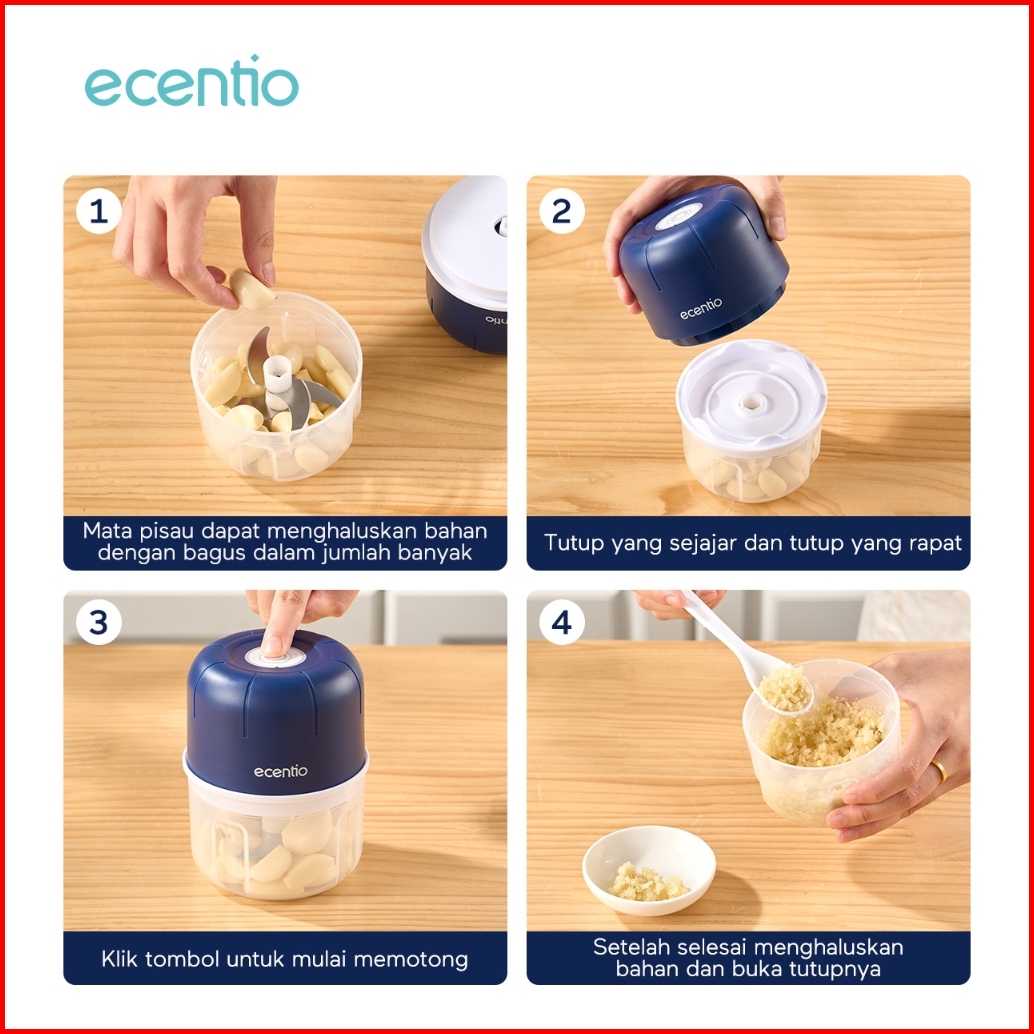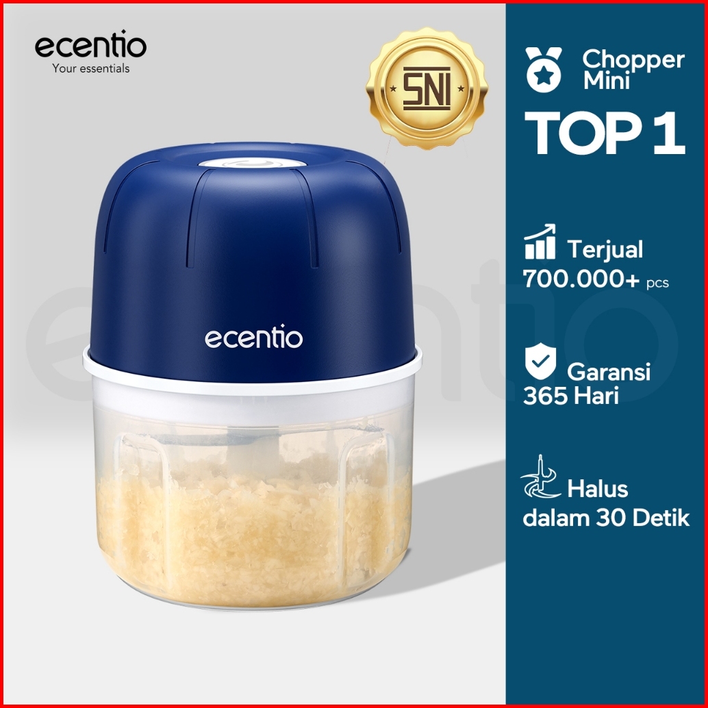 Ecentio Mini Chopper Blender 6 Pisau 250ml Portable Penggiling Bumbu Dapur Portable Penumbuk Bawang Biru Gelap