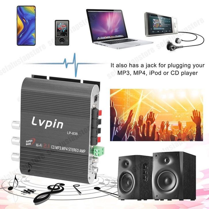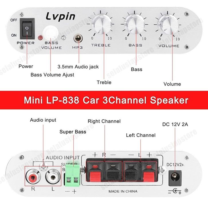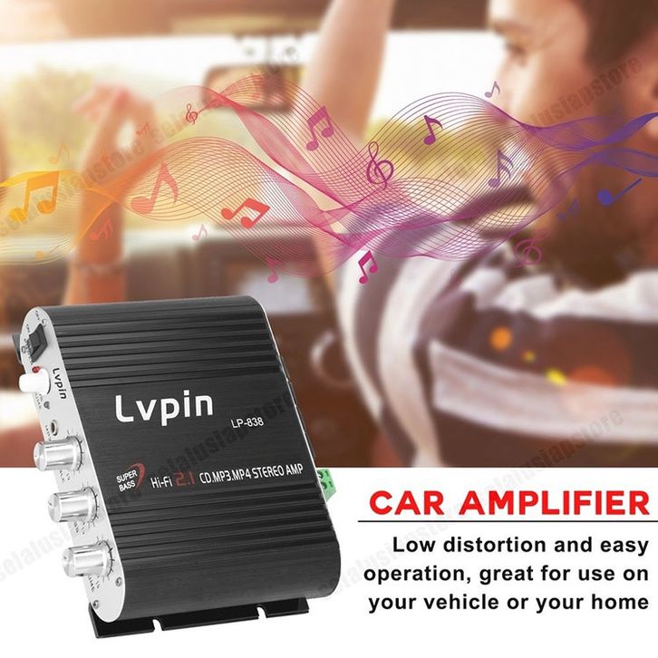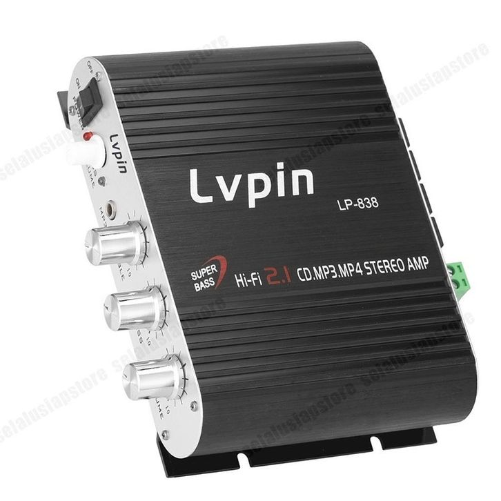 Amplifier Mobil LVPIN LEPY Mini Hifi 2.1 Stereo Ampli Treble Bass Booster 12V LP-838