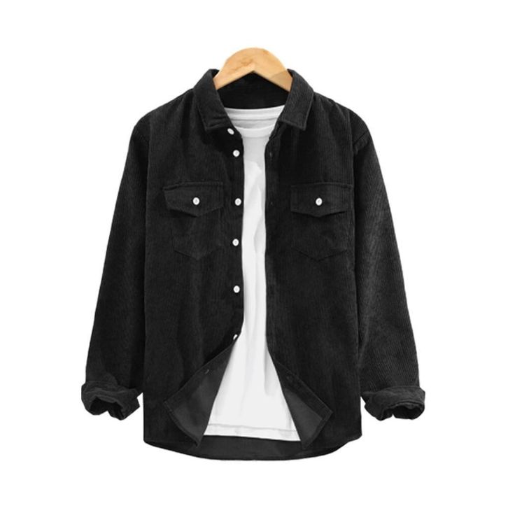 Jaket Corduroy pria Jaket Baju pria terbaru Korean Style Jaket Warna Solid Corduroy American Retro jaket Lengan Panjang