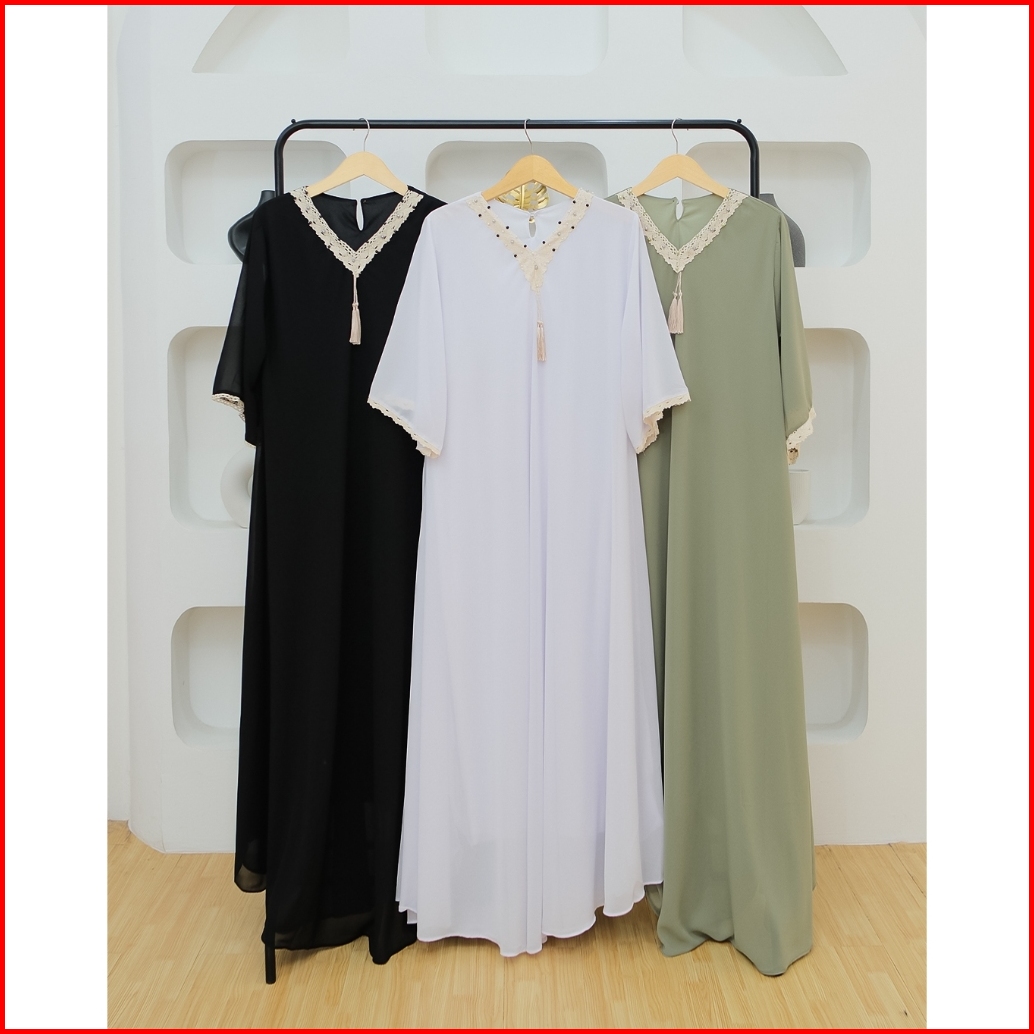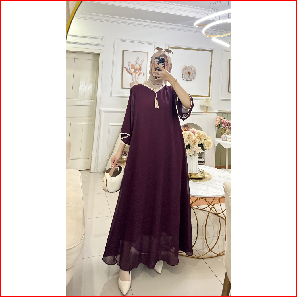 Aurel Dress Korean Style - Gamis Ceruty Babydoll - Kaftan Terbaru 2024 Lebaran Wanita Jumbo Ld 120