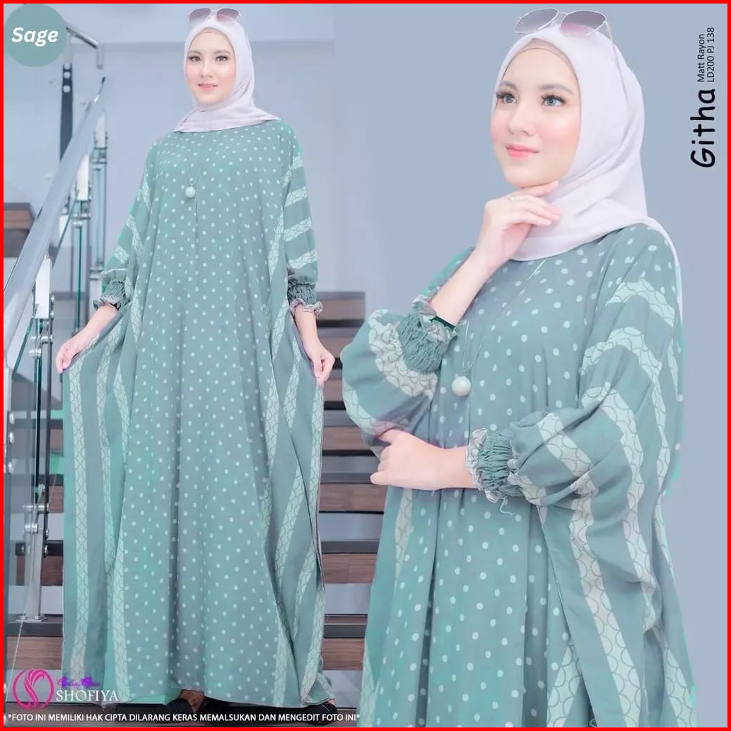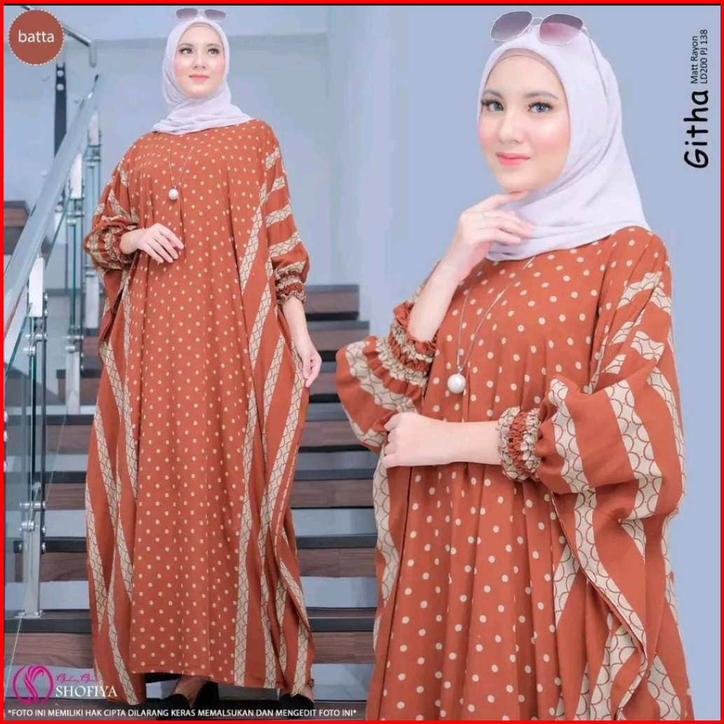 Kaftan Wanita - Githa Kaftan Kondangan Motif Polkadot Size Jumbo Xxxxl Busui Lengan Panjang Rayon Premium