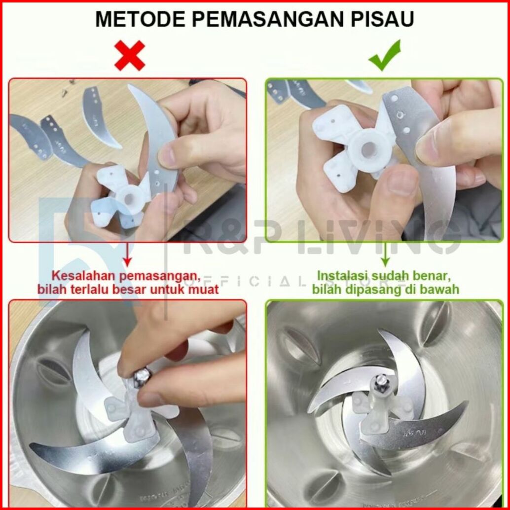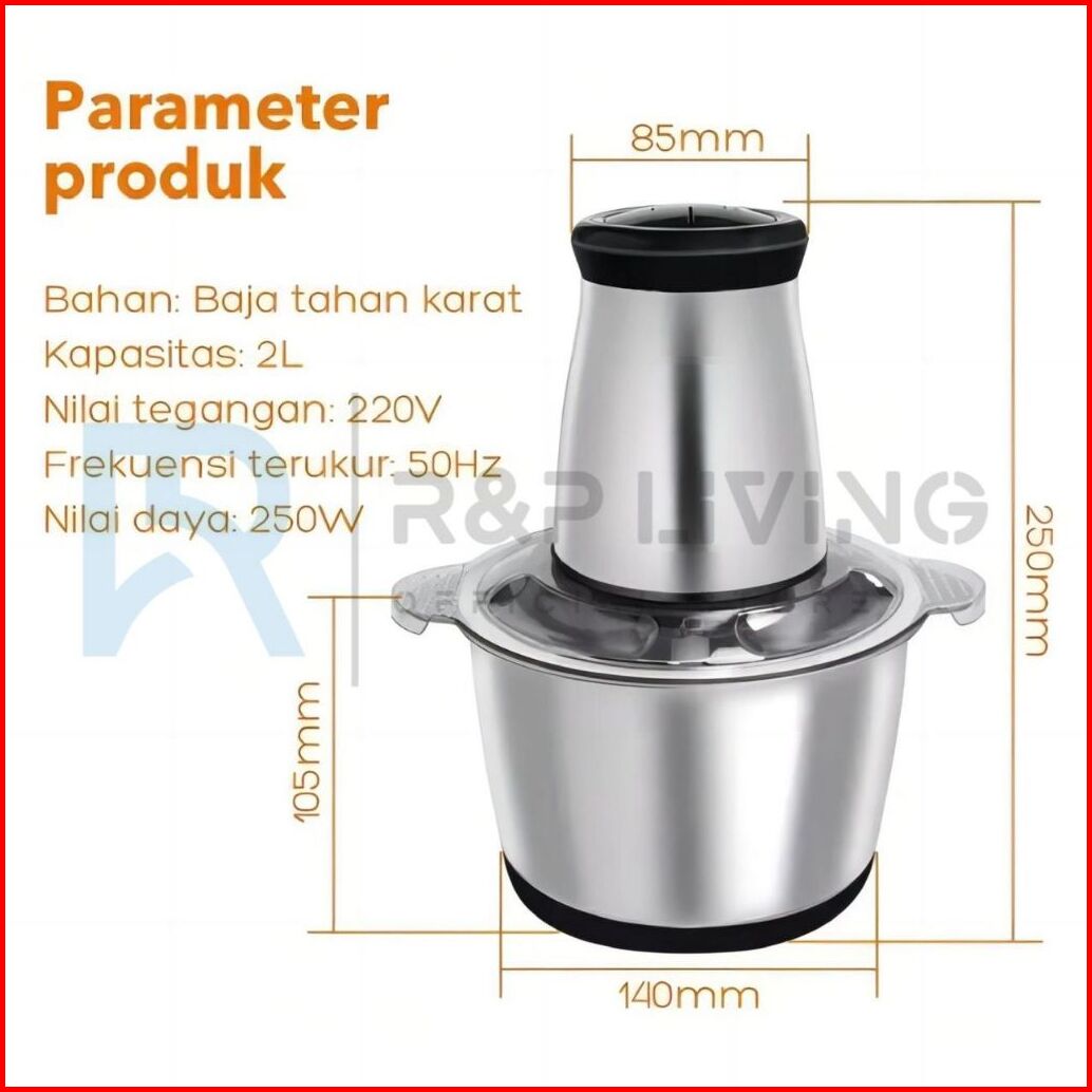 R P Ready 2l Blender Chopper Penggiling Daging Pisau Stainless Steel Yang Dapat Dilepas