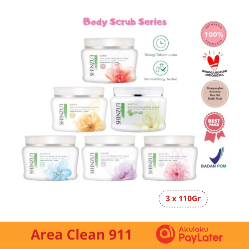 [ 3 Pcs ] Scrub Badan Shinzui Skin Lightening Kirei/Sakura/Hana/Matsu/Myori Kensho 110gr