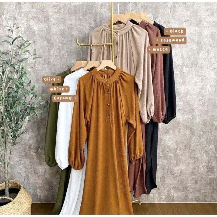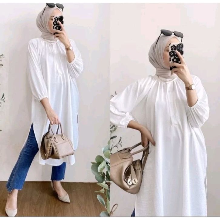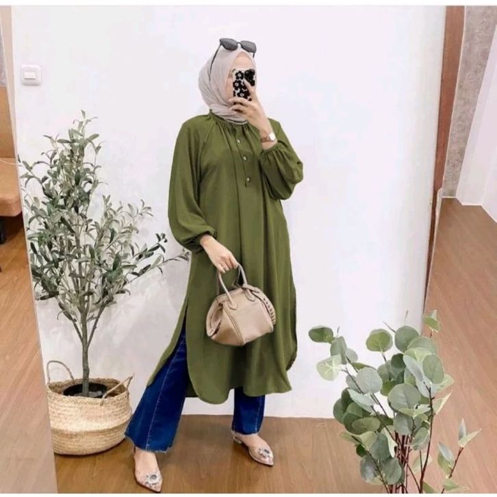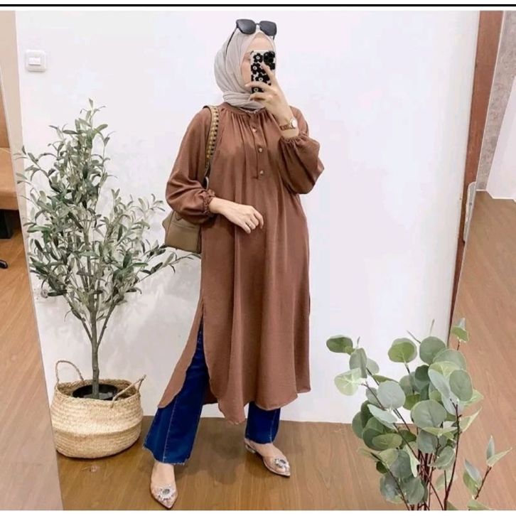 Tunik Crinkle Wanita Atasan Muslim Baju Tunik Panjang Perempuan Polos Simple Casual Kekinian Crinkle Airflow Trend