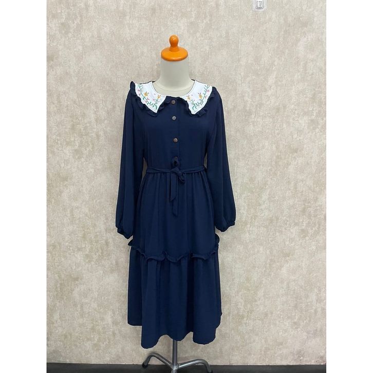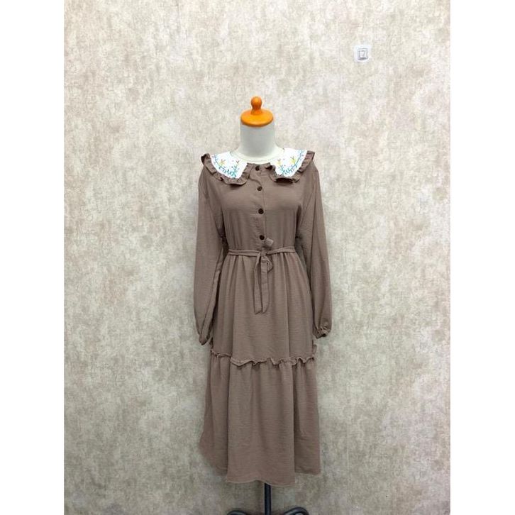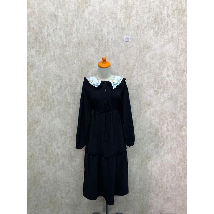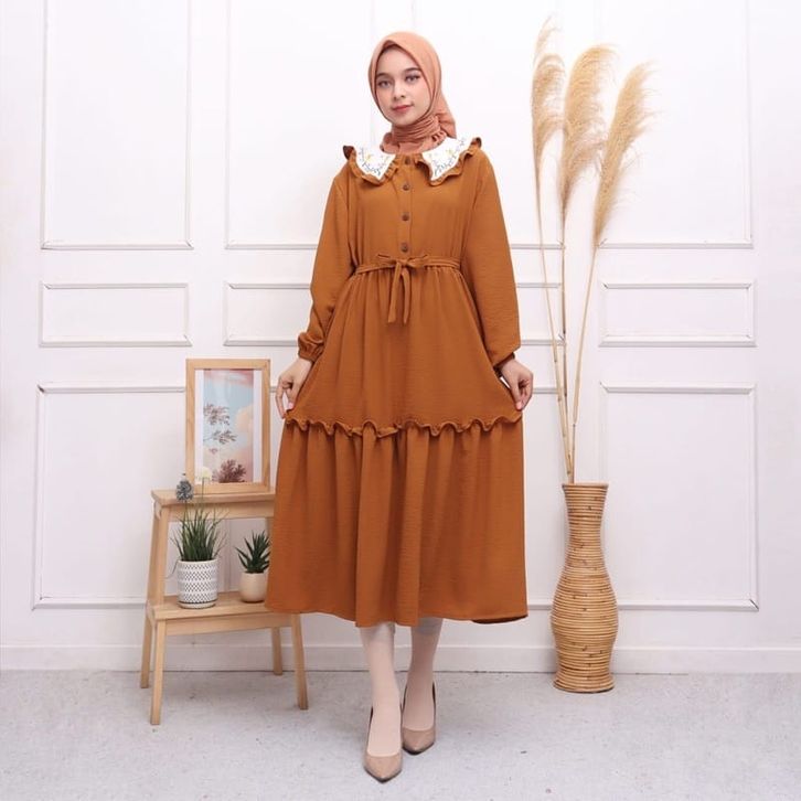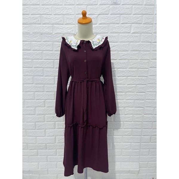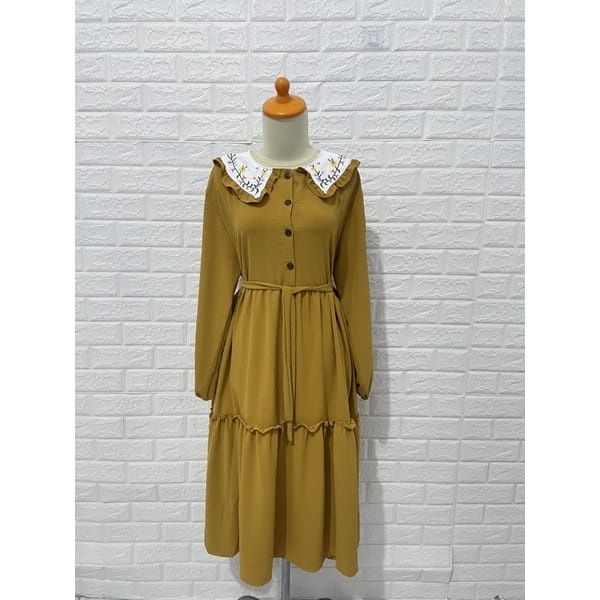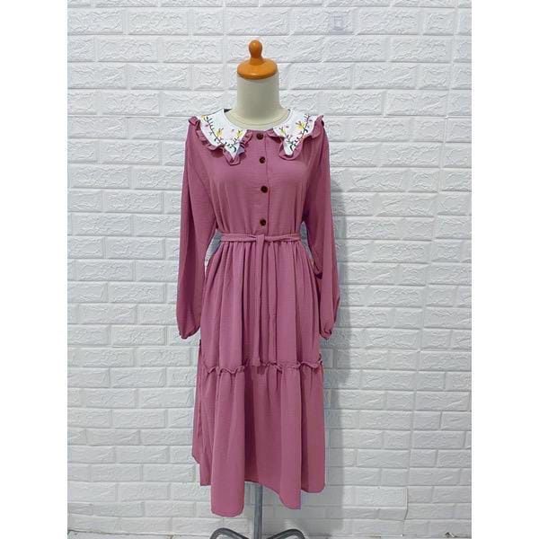 Midi Dress Wanita Gamis Muslim Mix Bordir Fashion Muslimah Remaja Perempuan Lebaran Pengajian Kasual Katun Micro Trend