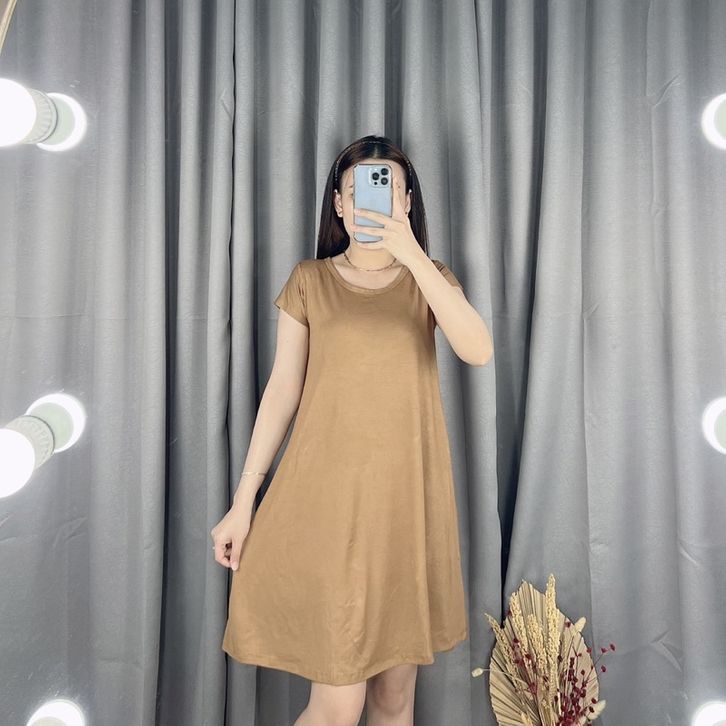 Dress Wanita Jumbo Mini Daster Kaos Perempuan Pendek Fashion Casual Kekinian Korean Style Bahan Spandex Rayon Adem