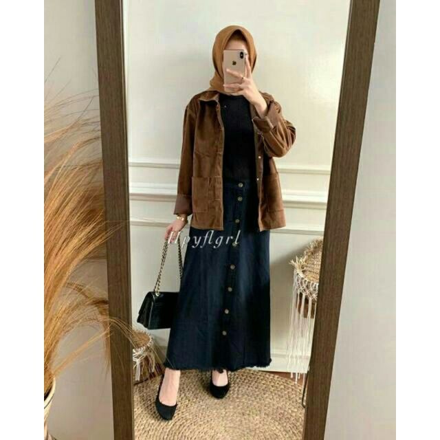 ROK BUTTON SKIRT JEANS DENIM ROK SPAN JINS KNITTED PUTIH HITAM PANJANG ROK WANITA MURAH TERBARU