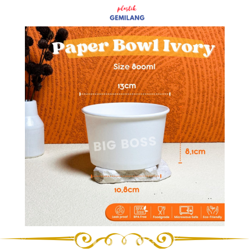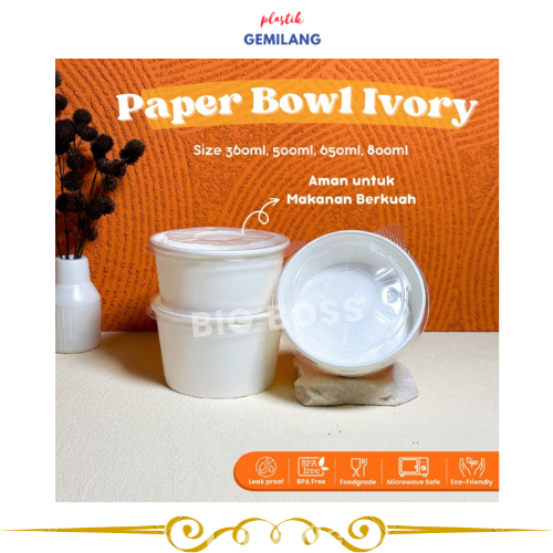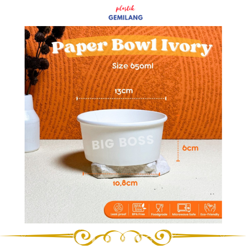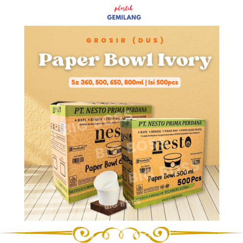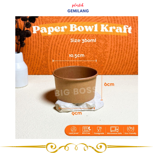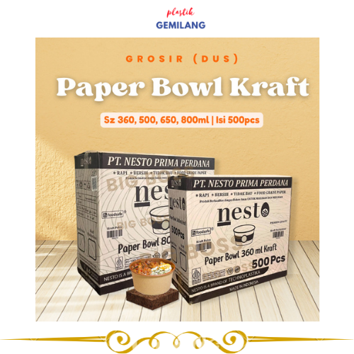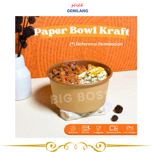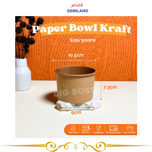 Paper Bowl Mangkok Kertas Anti Bocor Kraft Coklat & Putih 360ml 500ml 650ml 800ml 1 Dus Isi 500 Pcs