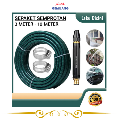 SEPAKET SEMPROTAN AIR SELANG SERAT BENANG HIJAU 3 METER - 10 METER ALAT SEMPROTAN CUCI MOTOR MOBIL