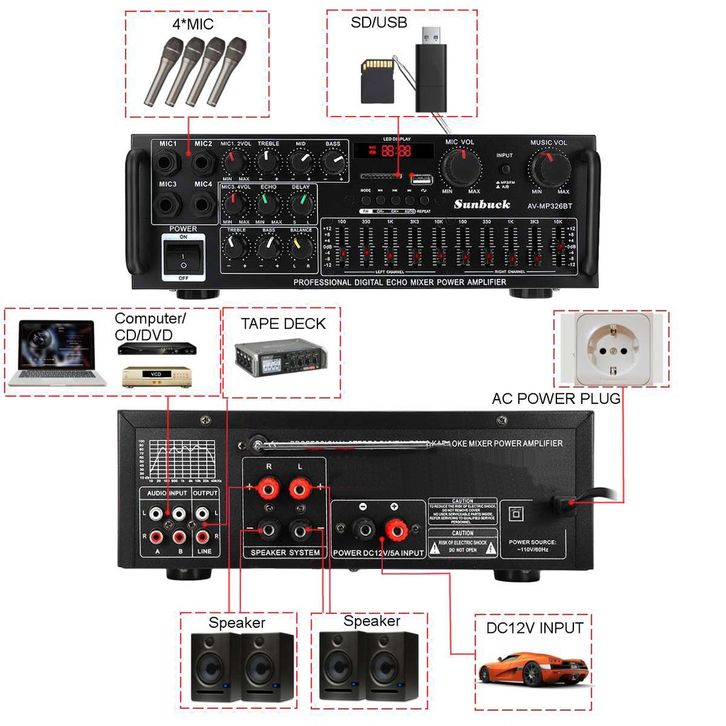 AMPLIFIER BLUETOOTH EQ 2000W AUDIO HOME THEATER FM RADIO AV-326BT