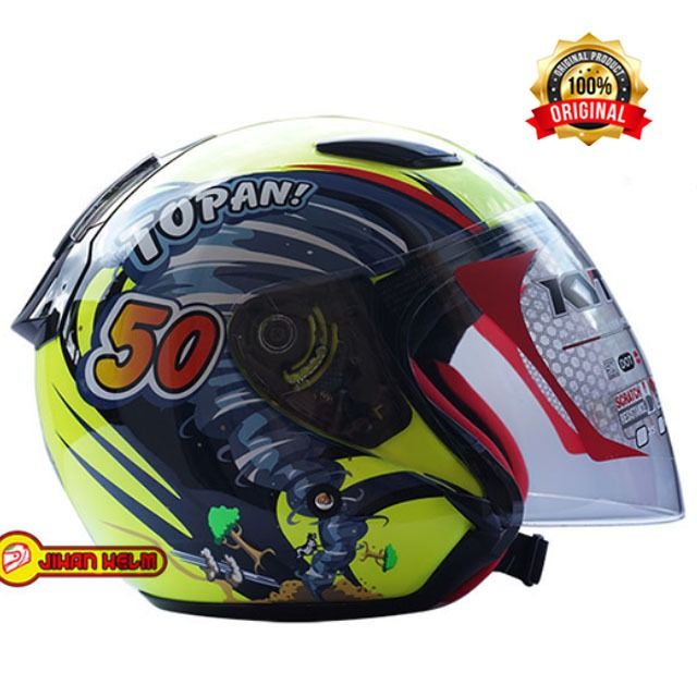 HELM KYT DJ MARU MOTIF #18 GUNMETAL BLUE HALF FACE ORIGINAL DEWASA TERBARU