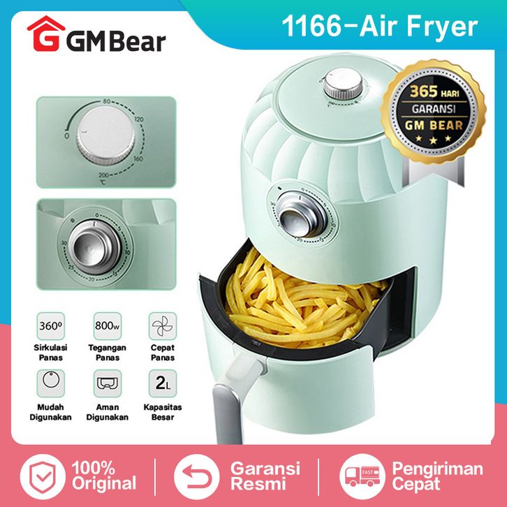 GM Bear Air Fryer Low Watt 2L 1166 - Alat Penggorengan Sehat Tanpa Minyak Anti Lengket Original Garansi Resmi