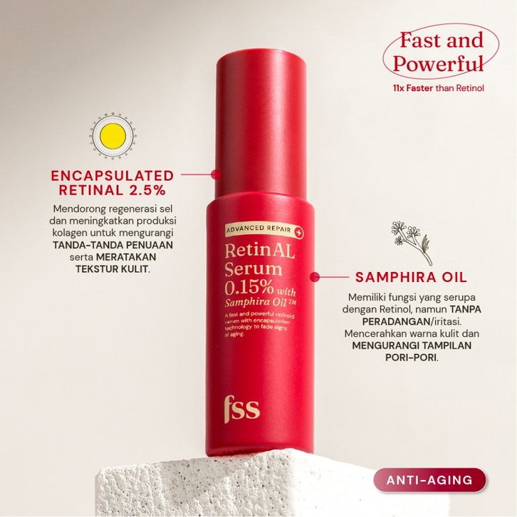 SERUM RETINOID FOR SKIN'S SAKE FSS RETINAL SERUM 0.15% MEMUDARKAN GARIS HALUS DAN KERUTAN MENGHALUSKAN TEKSTUR KULIT