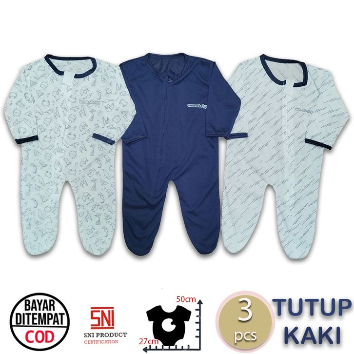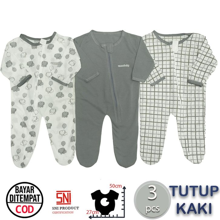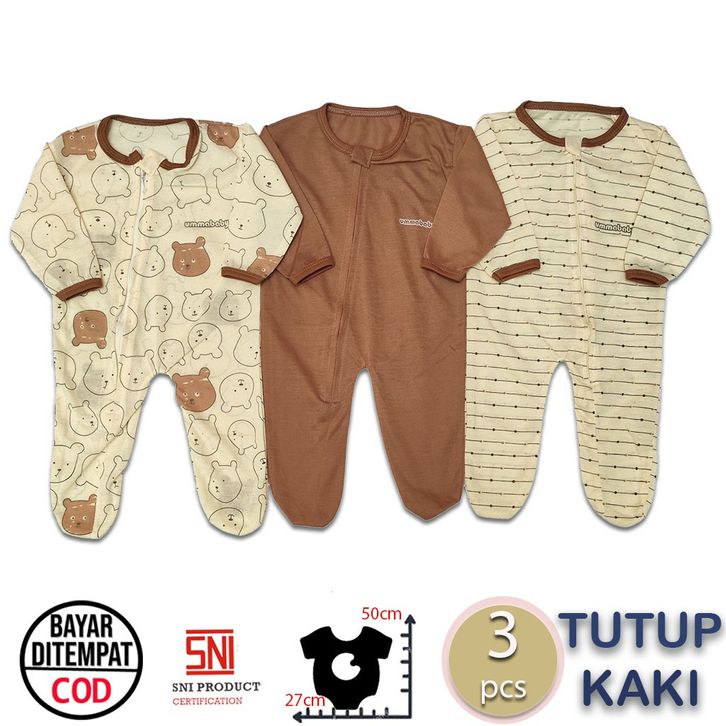 3 pcs Sleepsuit Bayi Baru Lahir Tutup Kaki Romper Bayi Jumper Bayi Panjang Baju Bayi Perempuan Laki Laki Set Terlaris