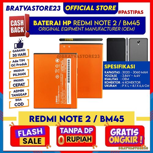 [Mall] Baterai Redmi Note 2 BM45 Original OEM Batre Batrai Battery Hp Handphone Ori