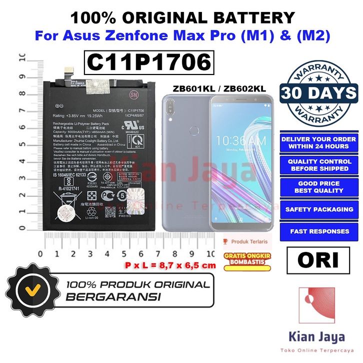 Garansi 100 Ori Baterai C11P1706 Untuk Handphone Asus Zenfone Max Pro M1, ZB601KL, ZB602KL / Max Pro M2, ZB631KL Batre