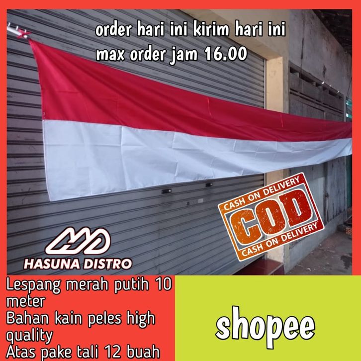 lespang merah putih lespang bendera panjang 10 meter FREE ONGKIR